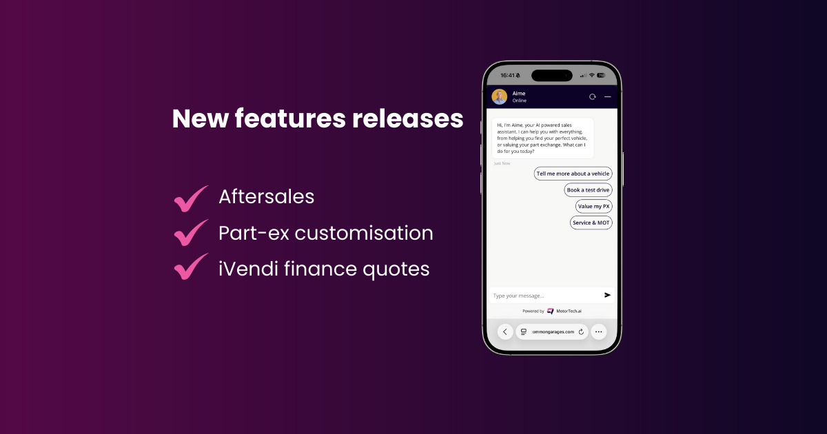 We’ve launched a new aftersales capability in AIME, meaning your customers can get answers to aftersales questions and book services, MOTs are more directly through AIME and your own booking form.